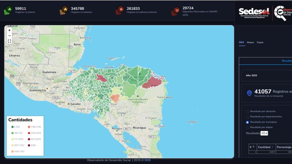 Tegucigalpa, 30 de septiembre de 2025. La Unidad de Geoestadística y Econometría Espacial (UGEE) del Observatorio de Desarrollo Social (ODS), de la Secretaría de Desarrollo Social trabaja para transformar datos en información útil que permita implementar políticas públicas orientadas al desarrollo y mejoramiento de la sociedad. A través del relacionamiento de la información que recoge el Sistema de Información y Registro de Beneficiarios de Honduras (SIRBHO), mediante herramientas estadísticas y mapas, se identifican las poblaciones más pobres y vulnerables, así como la distribución de sus necesidades en el territorio.